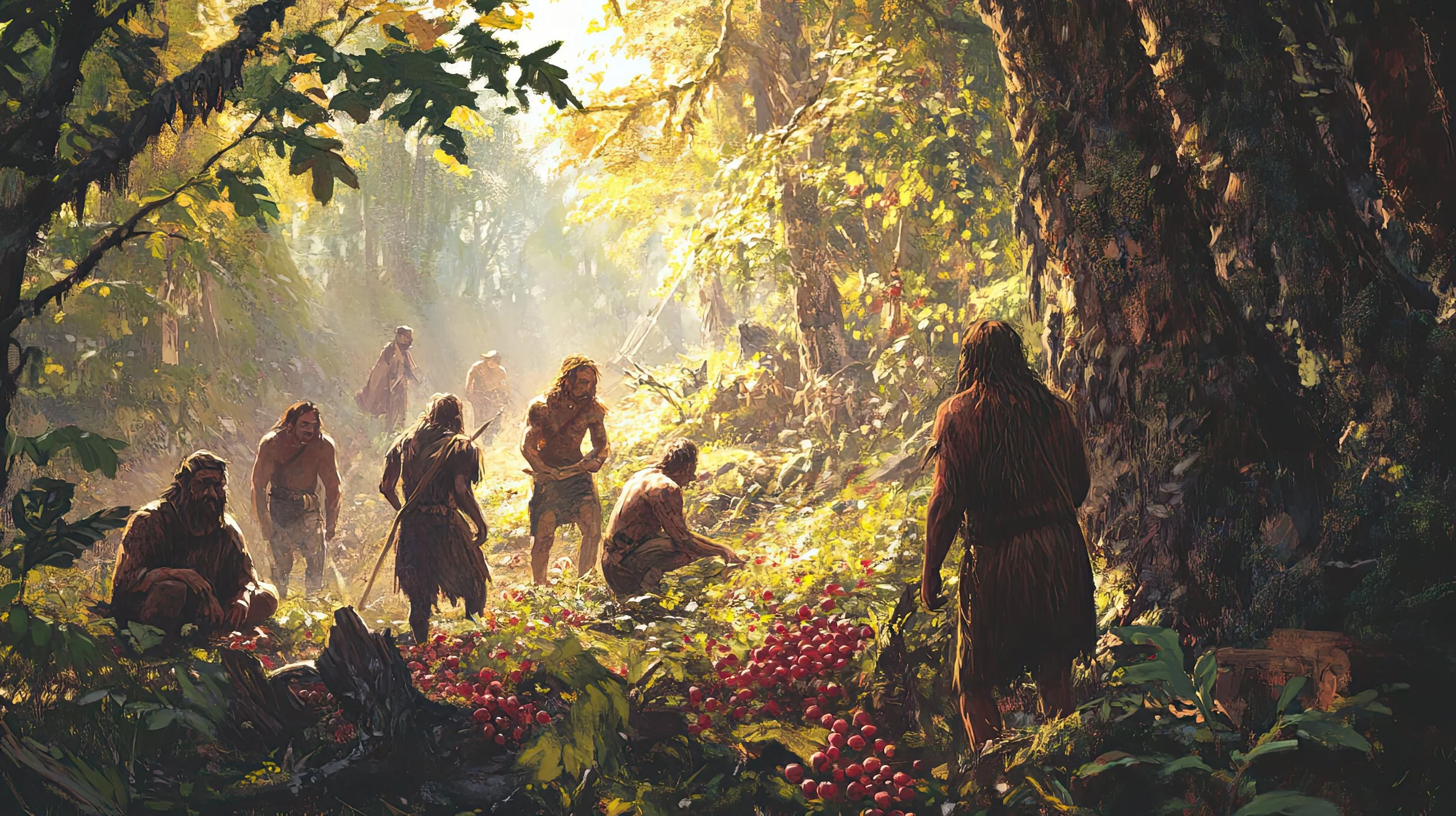 Our story begins with our primate ancestors. For roughly 7 million years, chimpanzees, bonobos, and early hominins were overwhelmingly fruit eaters. Their diets centered on fruits, tubers, and other carbohydrate-rich plants, with protein from leaves and insects and modest amounts of fat from fruit seeds and the natural byproducts of fermenting fiber. For more than 90% of our evolutionary history, humans and our relatives were fundamentally carb-burners.