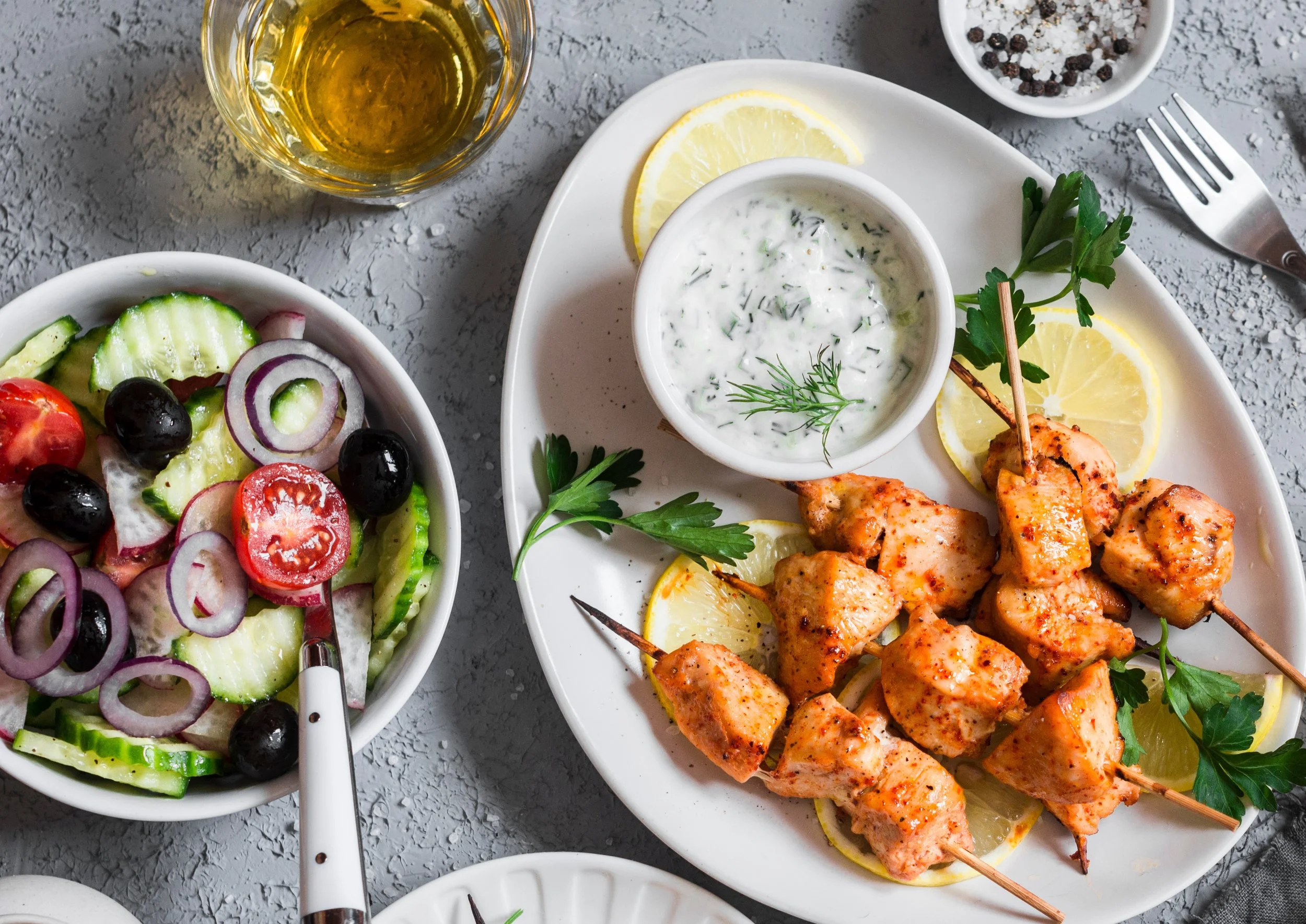 This is one of my go-to dinners for the family. It’s super versatile, you can use chicken, lamb, or beef and then add whatever toppings you have on hand, like feta cheese and kalamata olives and chopped cucumbers. The real star here is the tzatziki sauce - which is super easy to make and can easily be made high protein/low fat for weight loss. I hope you love it as much as we do!